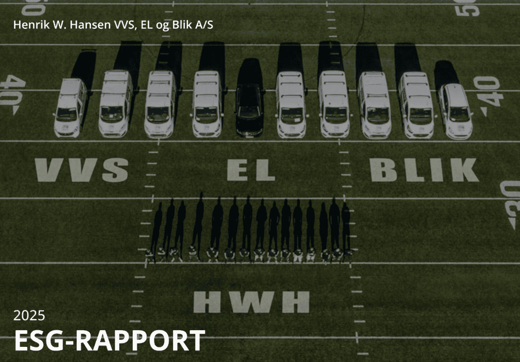 Hos Henrik W. Hansen VVS, EL & BLIK A/S arbejder vi med ESG (Environmental, Social og Governance) som en del af vores tilgang til ansvarlig drift. ESG repræsenterer tre centrale faktorer der anvendes til at vurdere, hvordan en virksomhed drives ud fra mere end blot økonomiske resultater og som virksomheder skal tage i betragtning for at drive en ansvarlig og bæredygtig forretning.